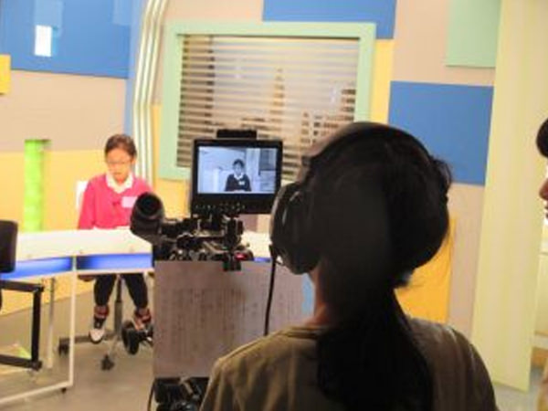 2学期は社会科の学習でニュース番組づくりや放送局の仕事について学習しました。そこで、FCI放送局の協力を得て、今年もスタジオ見学をさせてもらうことができました。到着後、アメリカと日本のメディアについてクイズ形式でお話をうかがった後、スタジオと調整室に分かれてスタッフ体験をしました。スタジオのセットやカメラに興奮する子ども達。天気予報の原稿を読むキャスター、それを写すカメラマン、調整室ではモニターを見ながら画面を切り替えるスイッチャーと音声の4つの仕事がありました。カメラの前で「5,4,3,2,1」の合図で原稿を読むときには緊張が漂いました。最後の質問コーナーでは、キャスターの久下さんがみんなの質問一つ一つに丁寧に答えてくださいました。報道にかかわる人々の工夫や努力を知る貴重な経験になりました。